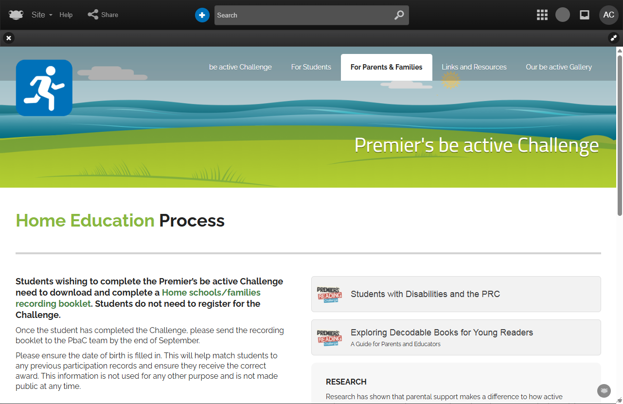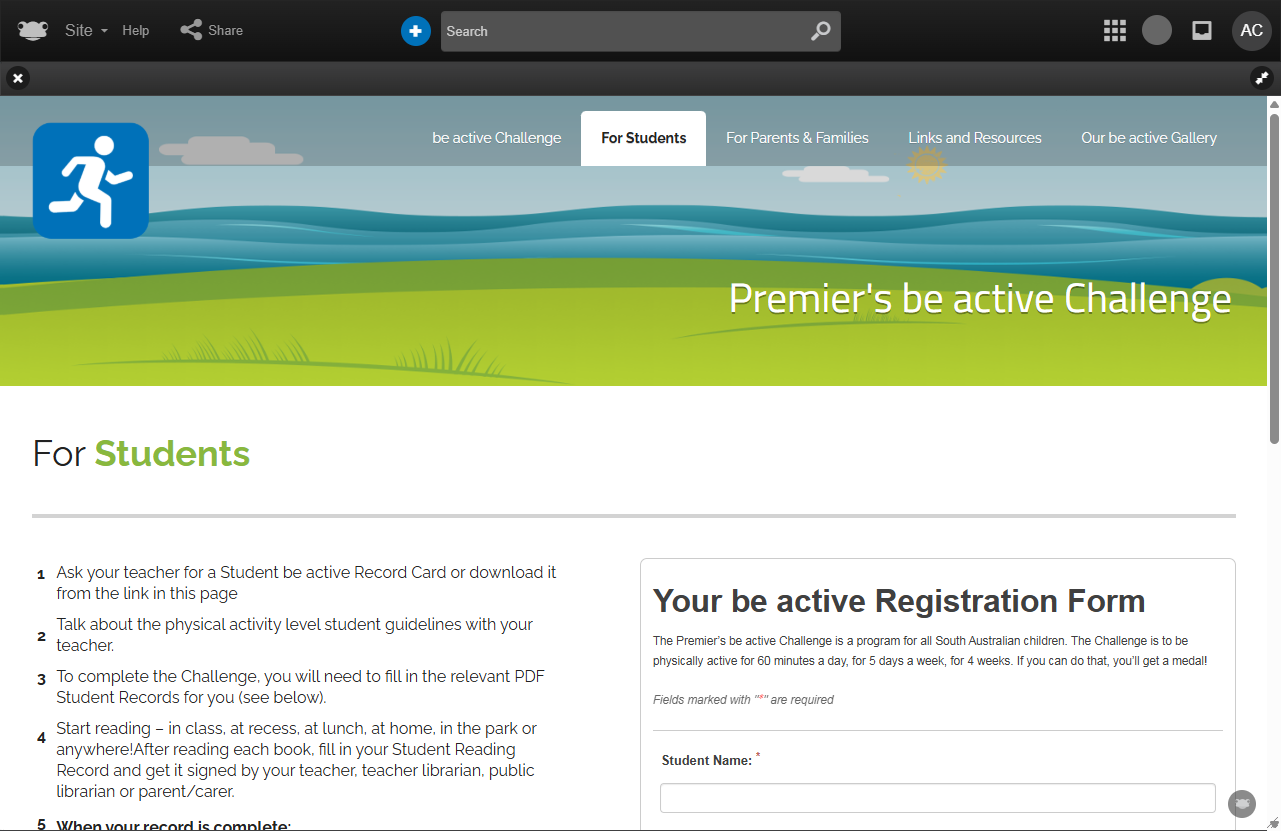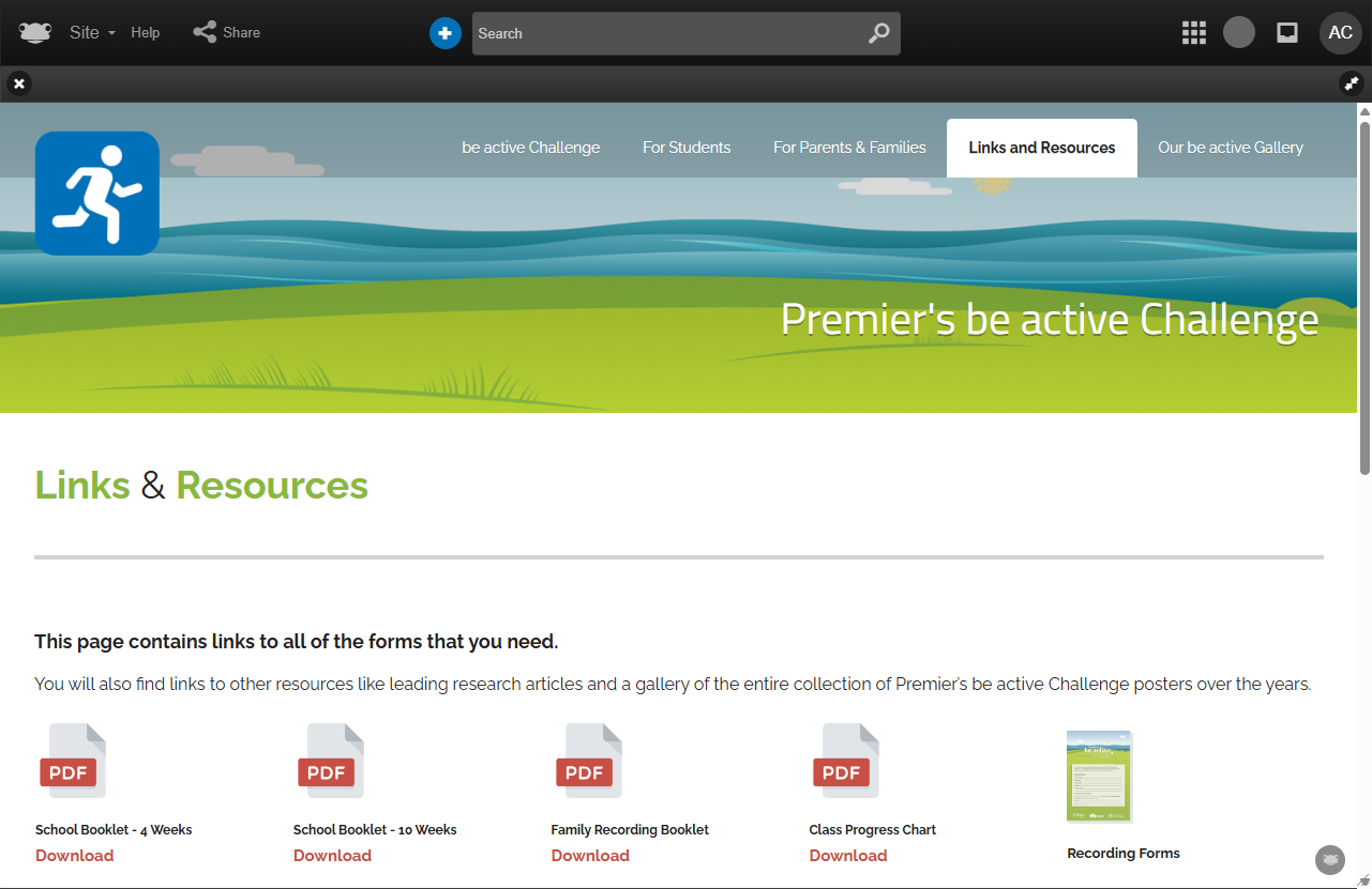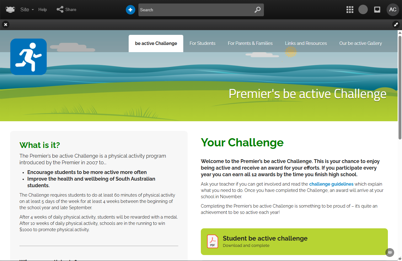 The Premier’s Be Active Challenge site uses the following features out of the box...