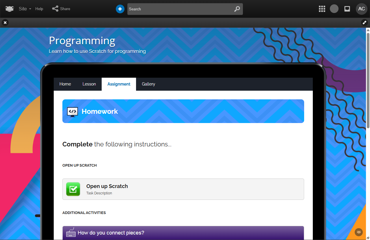 Using Frog functionality, you can set learning activities where students report on how to manipulate the code they have created and even upload their saved projects for review.