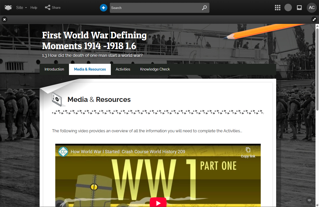 This is the first of several units looking at the reasons that triggered WW1 and how they would impact today.