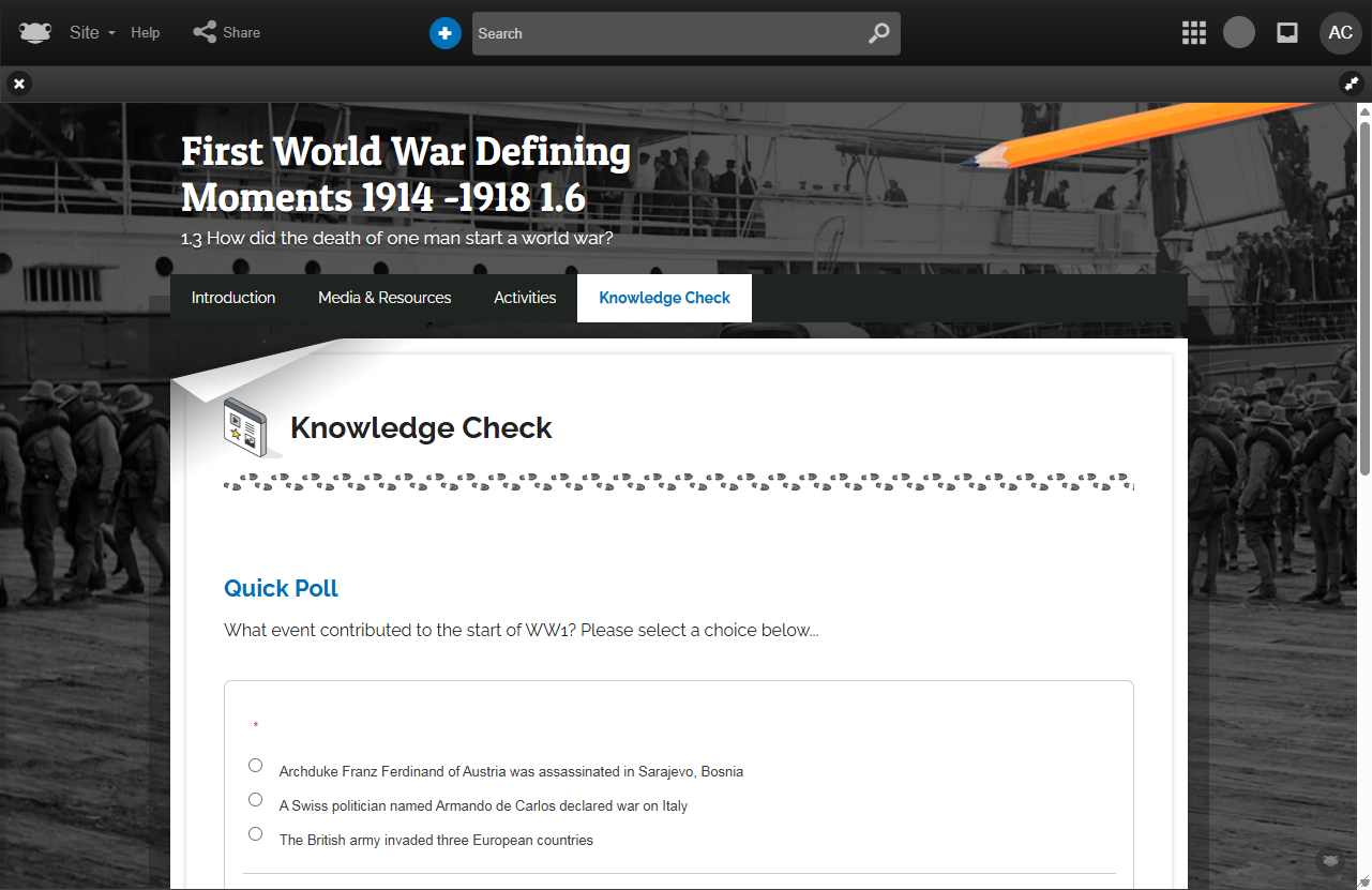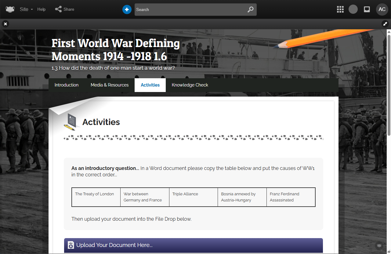 Using Frog’s functionality to create timelines and self-marking quizzes to stimulate and question how we would react today. This also gives teachers a unique insight into the whole class using this as an assign-a-page activity.