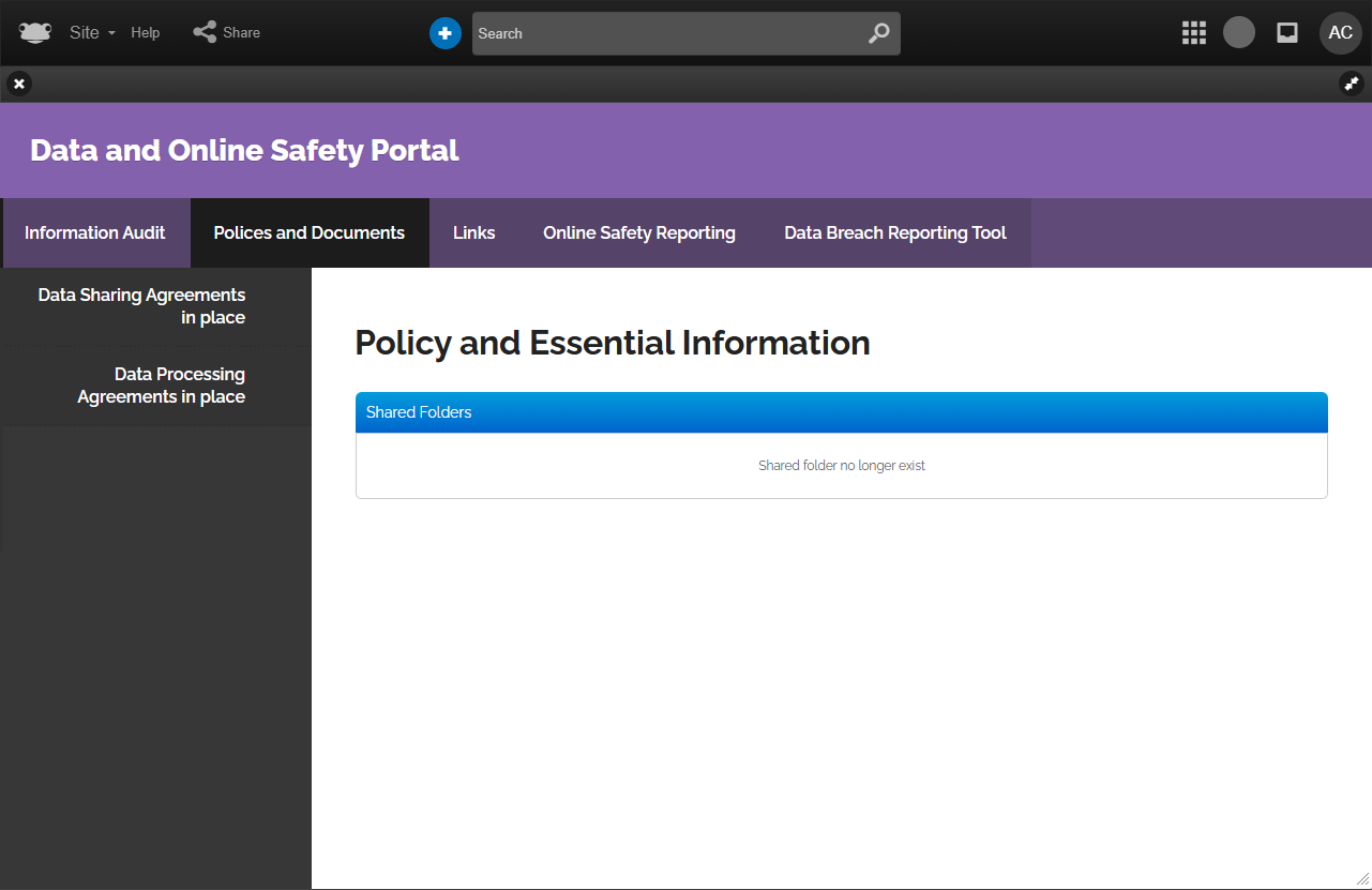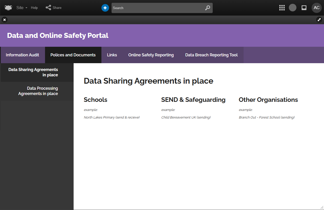 The Data & Online Safety Portal site uses the following features out of the box...