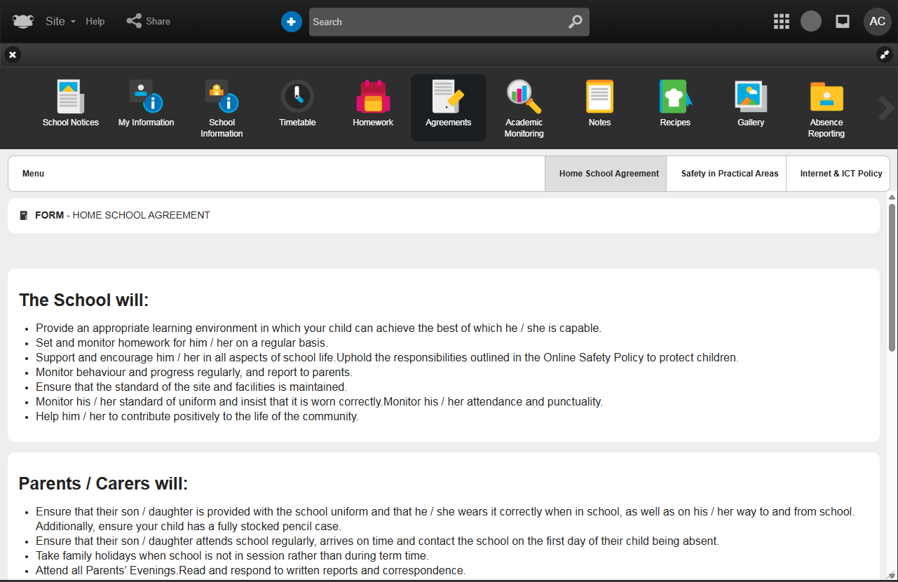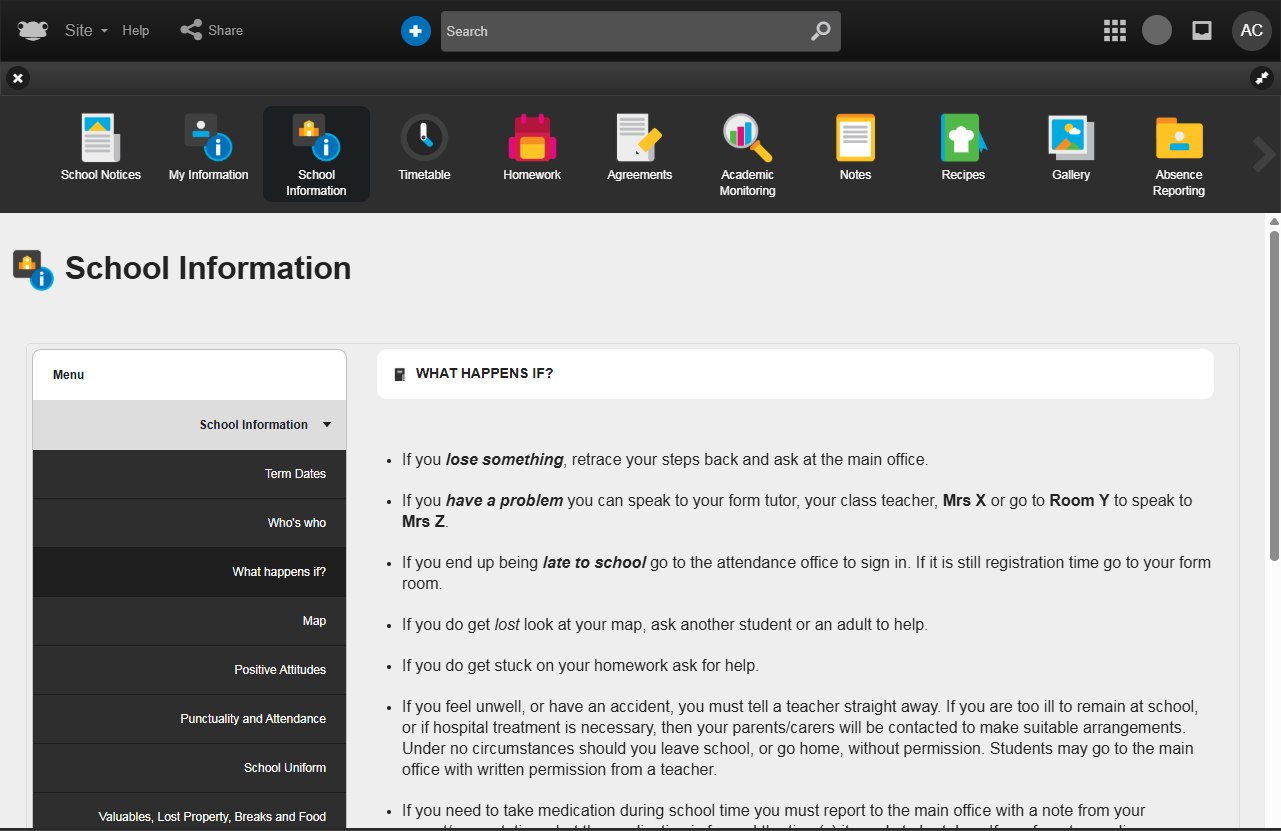 Staff can prepare and upload information for the academic year without print deadlines and easily amend as needed. Admins can use the keyword features to create personalised tutor group lists for teachers. Changes to timetables and school notices reflected instantly. Policy documents can be viewed by all users and approved without lengthy paper processes. Students and Parents have full visibility of any homework set.