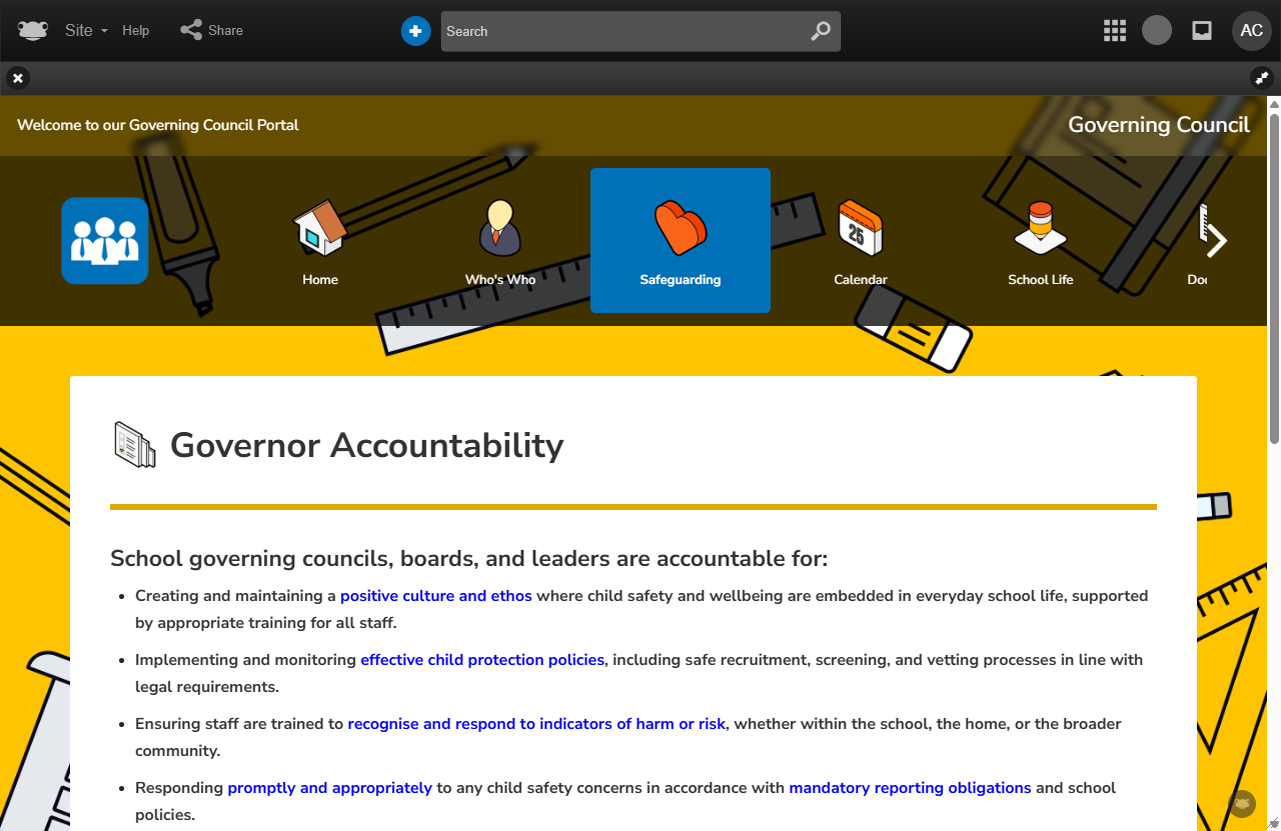 The Governing Portal is a secure, centralised hub designed to support strong, transparent and well-organised school governance. It provides Governors, school leaders and administrative staff with a professional space to access key information, collaborate effectively, and fulfil their strategic responsibilities with confidence.