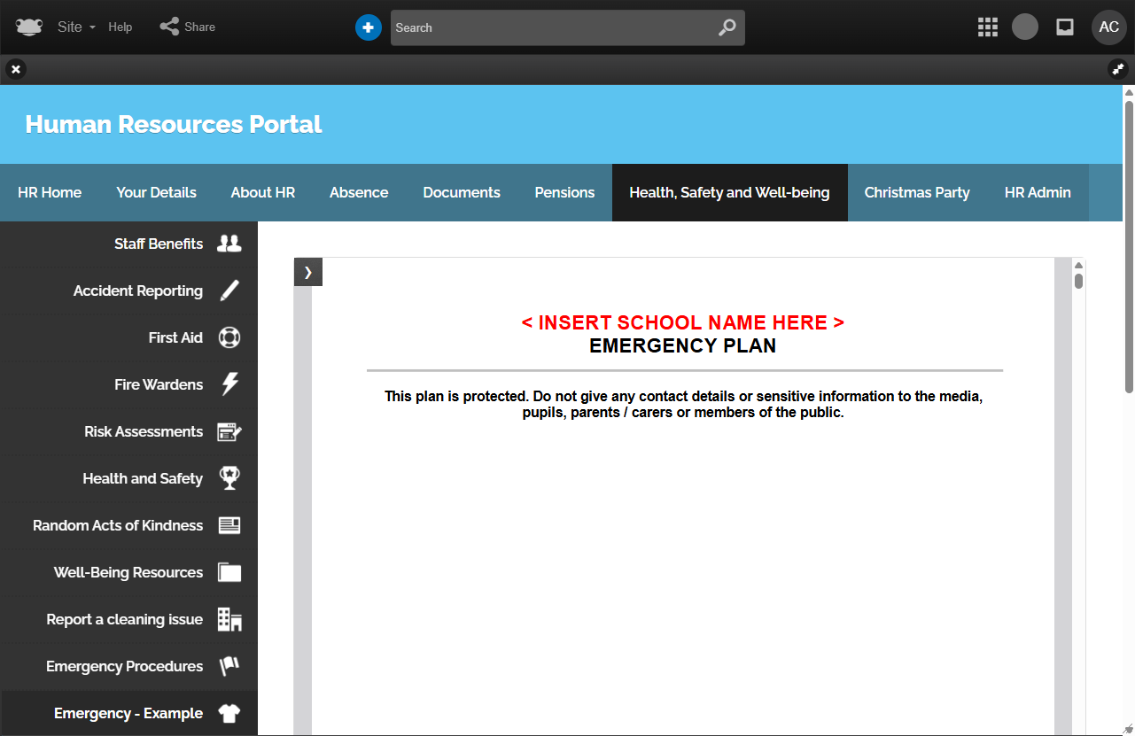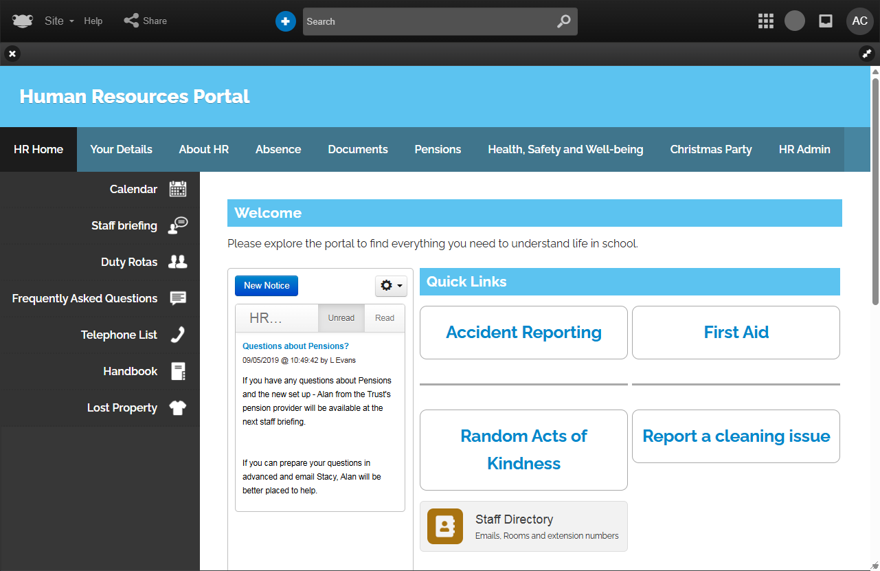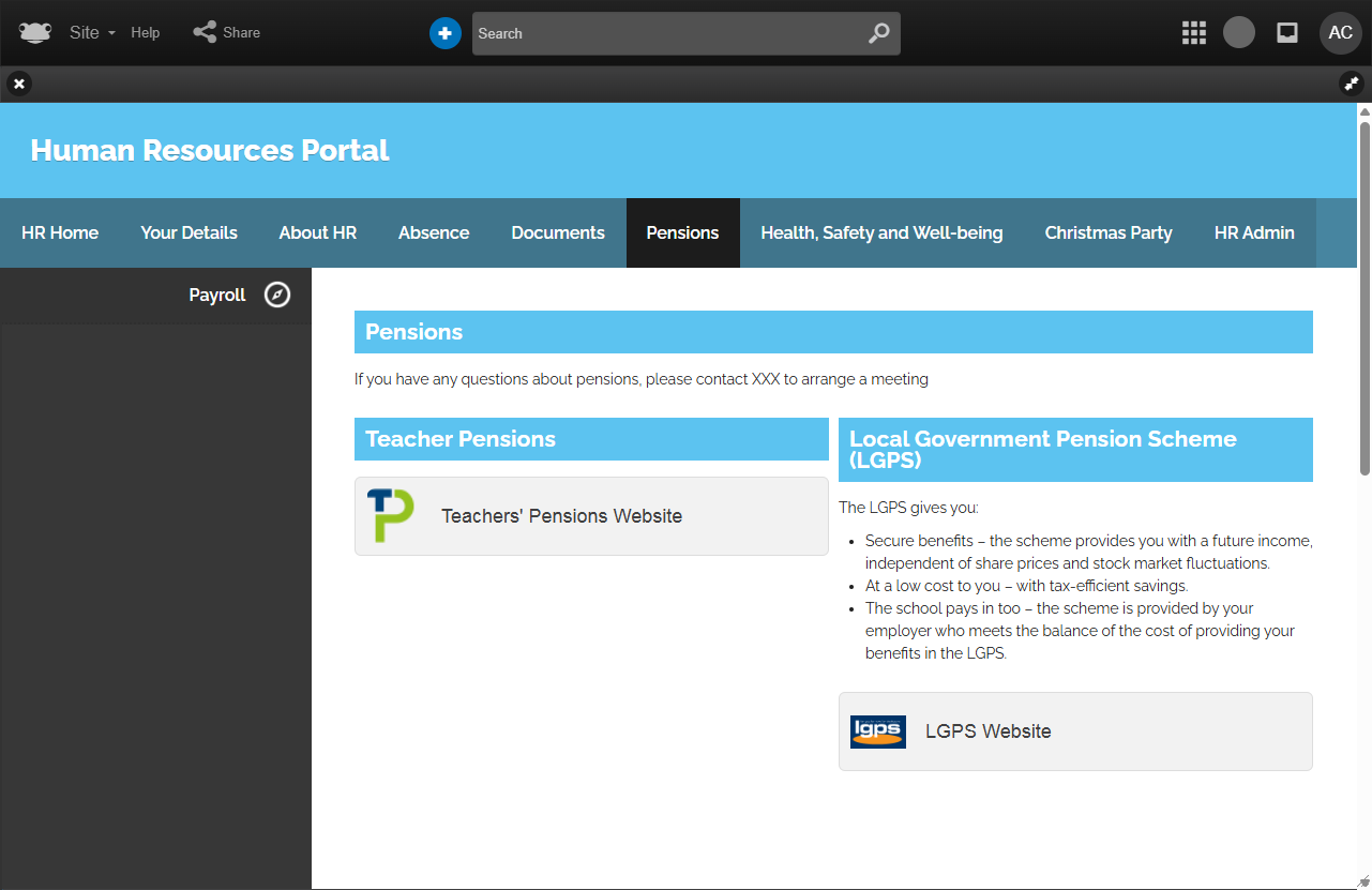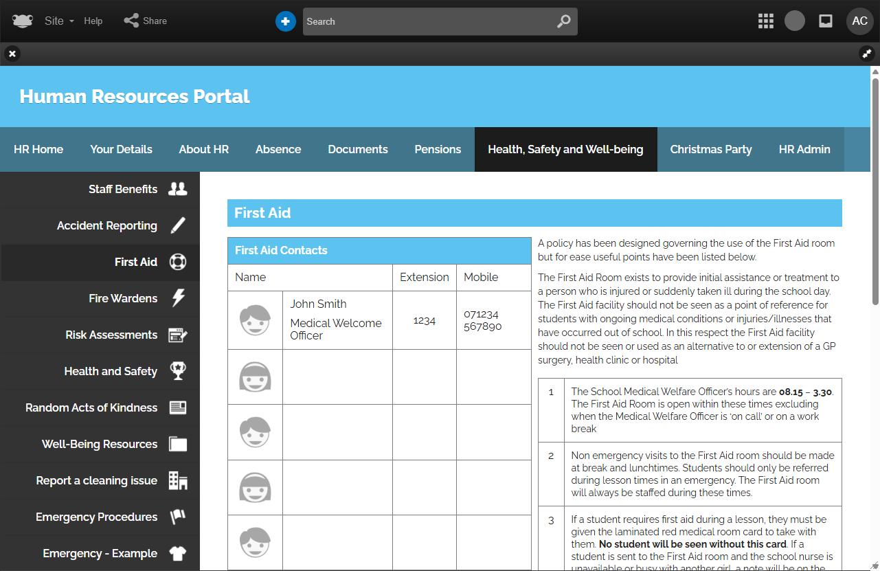 Multiple schools volunteered their HR Portals to share, we took all their ideas and combined them. School staff and teachers can quickly find information on everything from pensions to first aid.