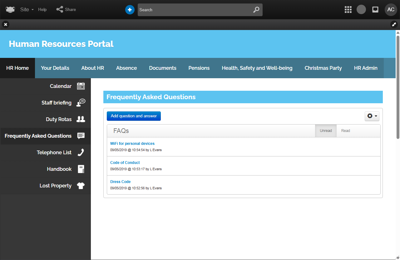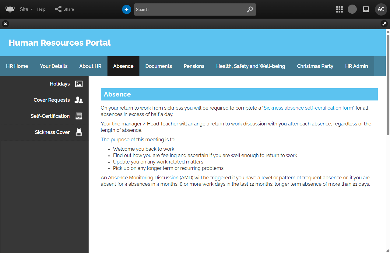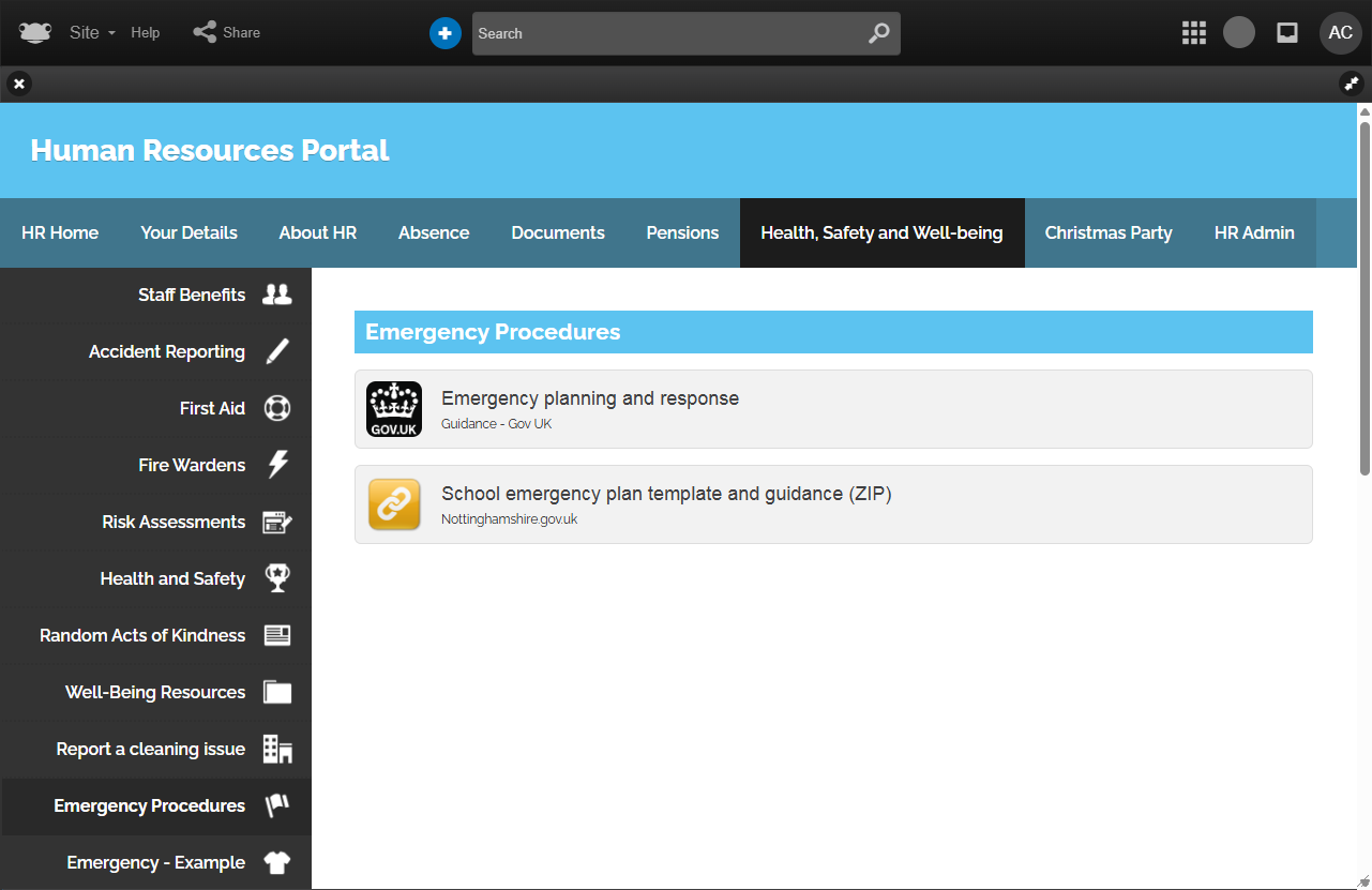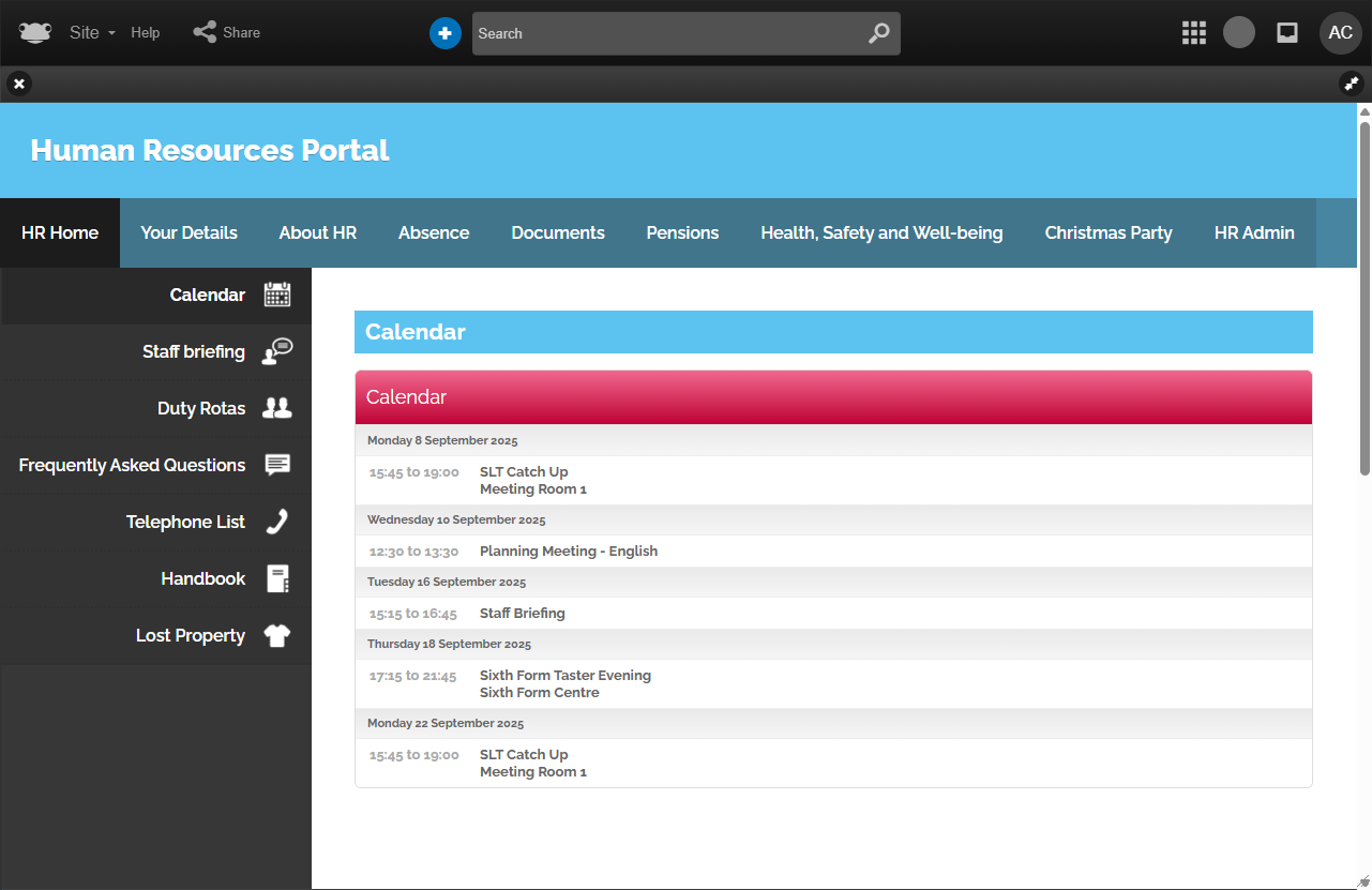 Multiple schools volunteered their HR Portals to share, we took all their ideas and combined them. School staff and teachers can quickly find information on everything from pensions to first aid.