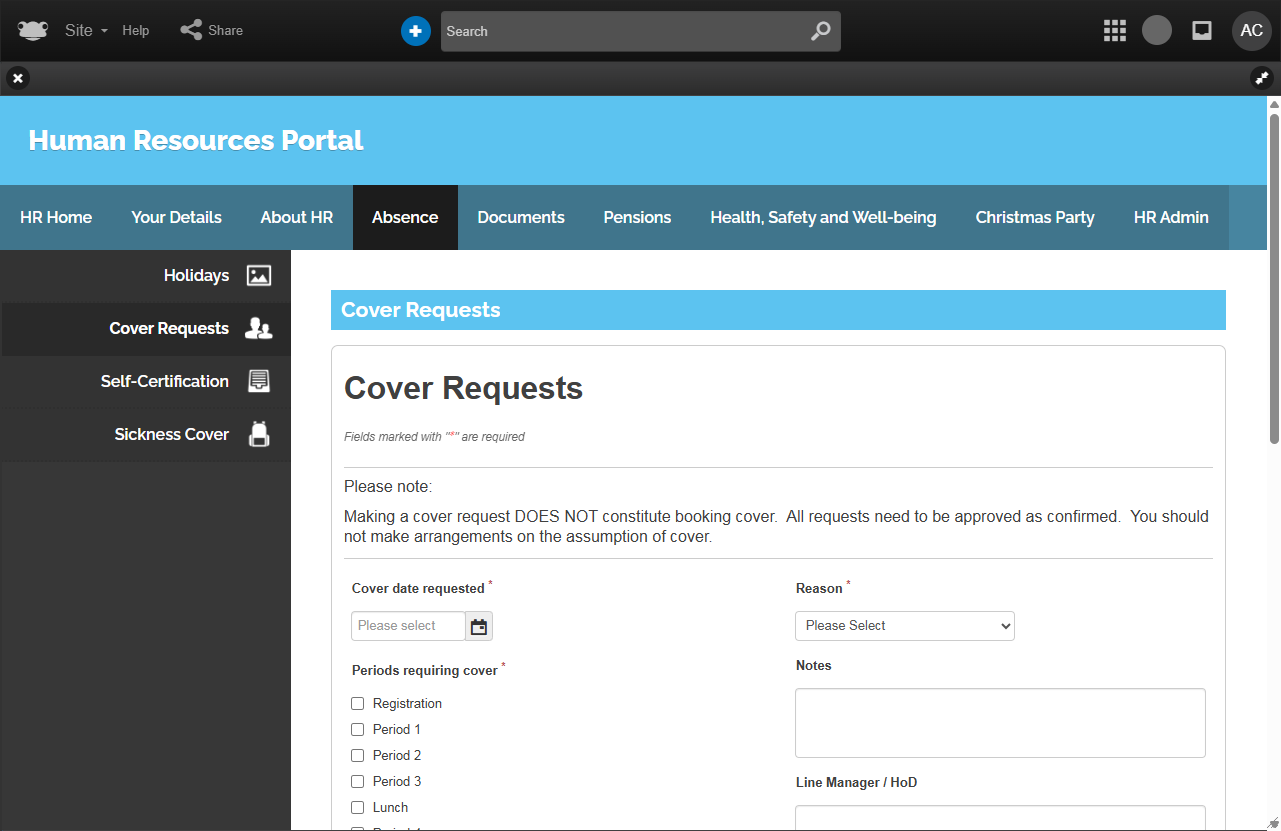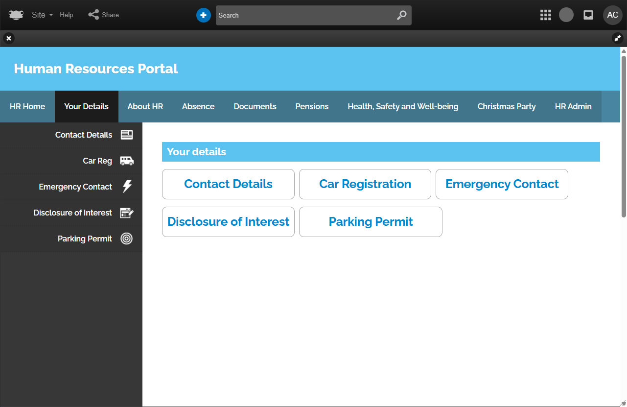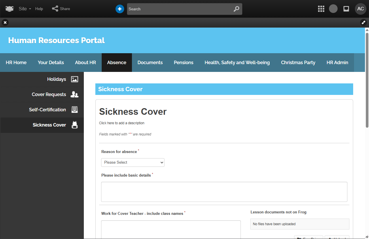 There are spaces to record personal information, such as next-of-kin and car registrations. Using Frog’s Forms, leave and cover can be requested. In short, all the data that is typically paper-based can be swapped out for a secure, searchable Frog site.
