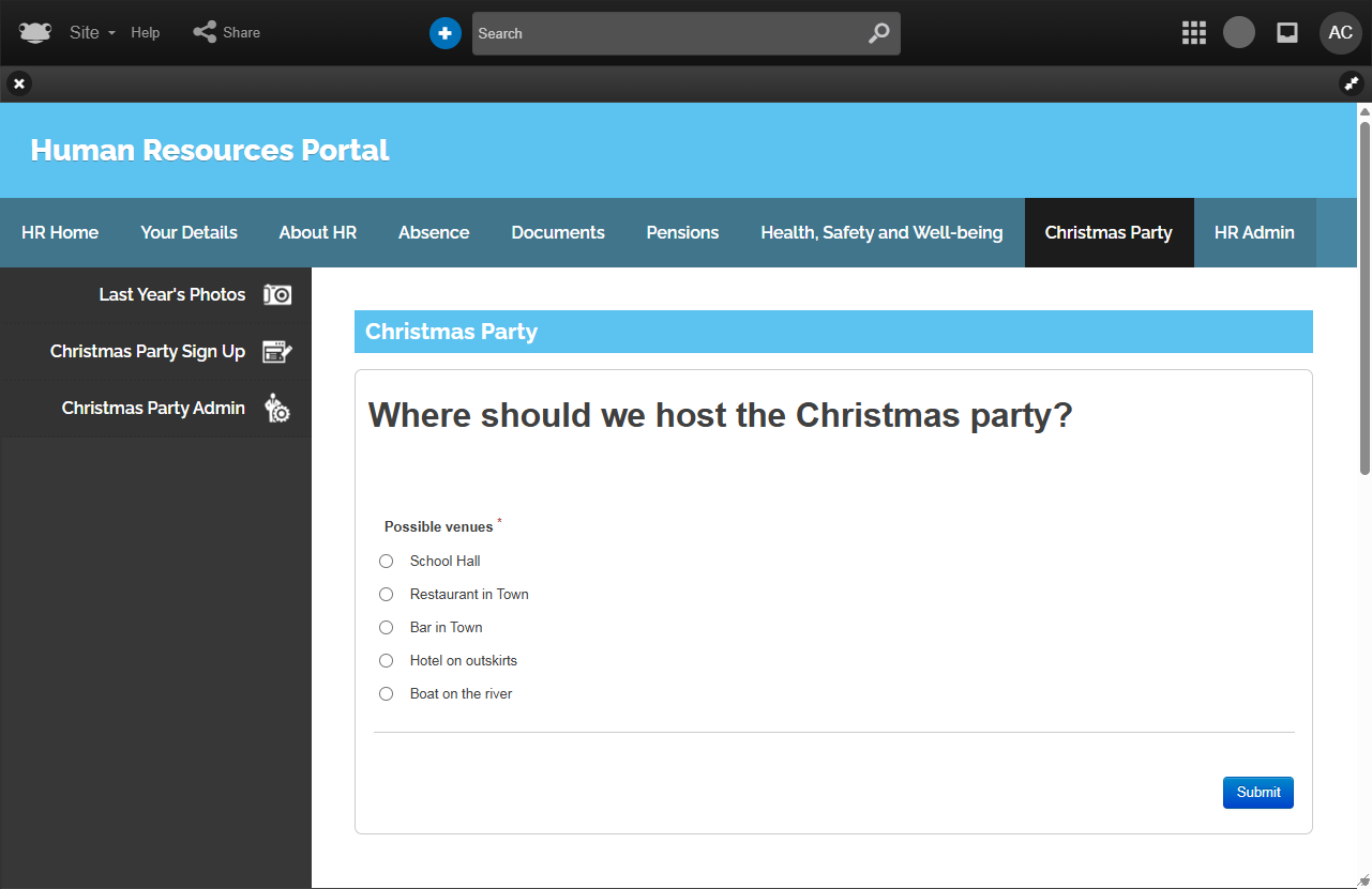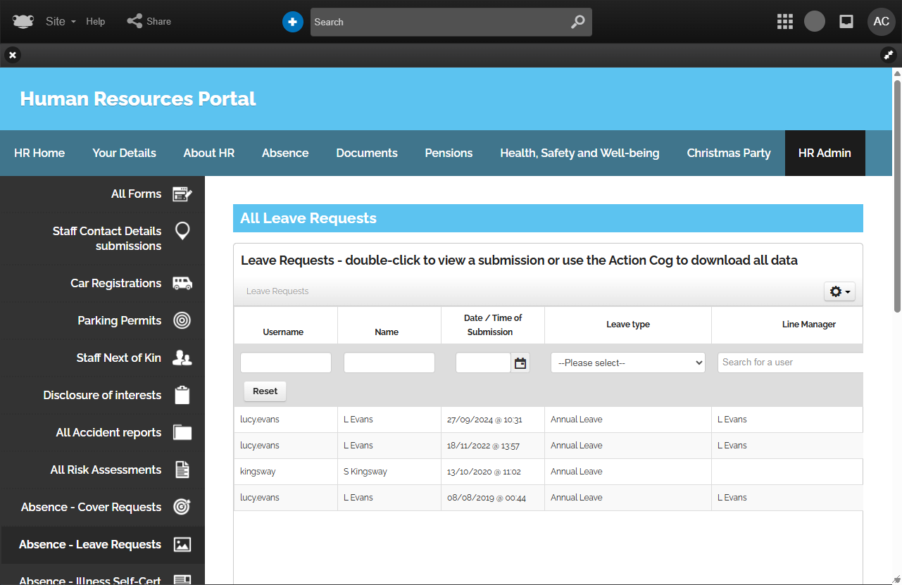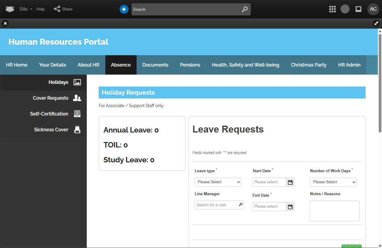 There are spaces to record personal information, such as next-of-kin and car registrations. Using Frog’s Forms, leave and cover can be requested. In short, all the data that is typically paper-based can be swapped out for a secure, searchable Frog site.