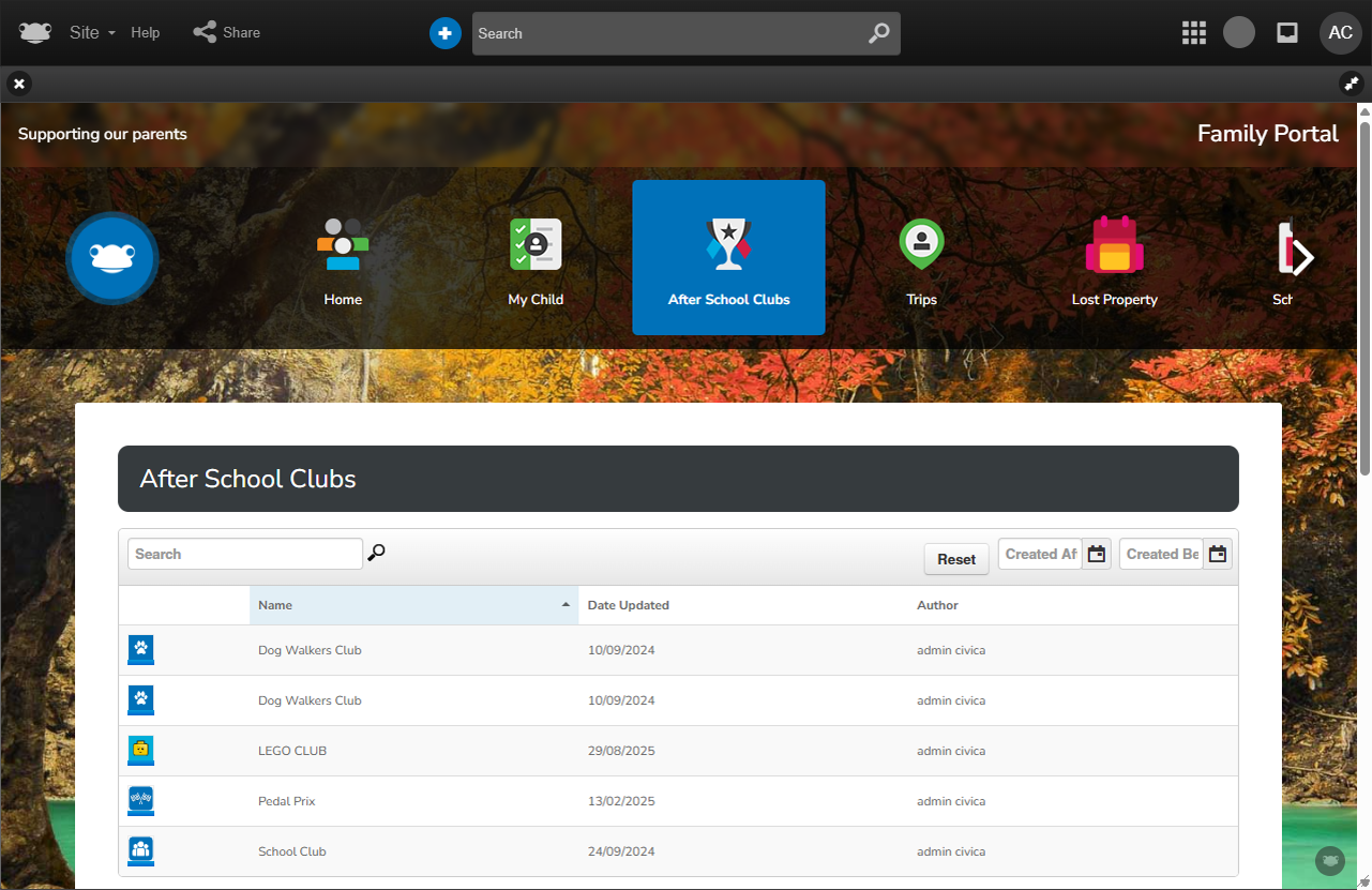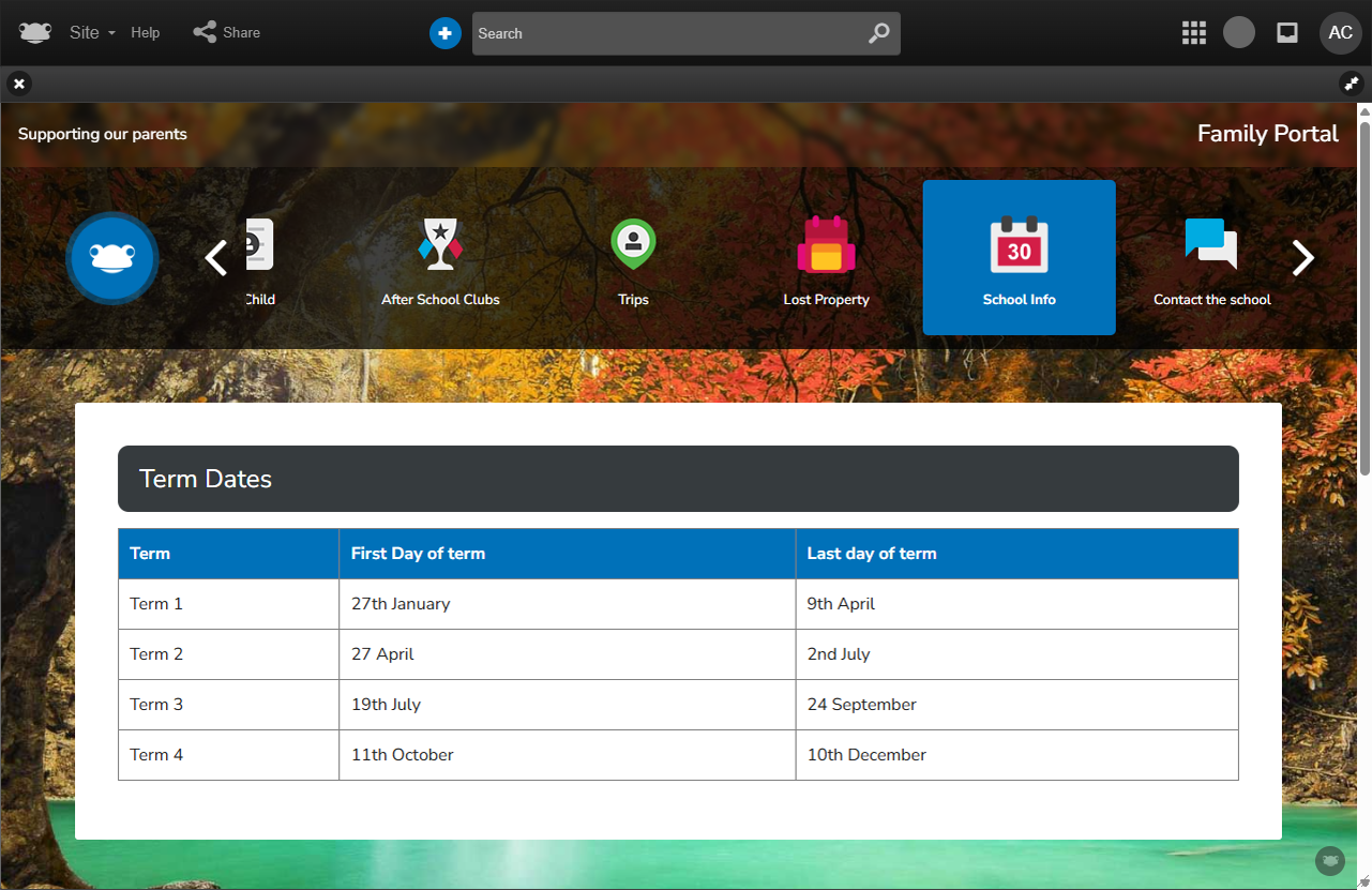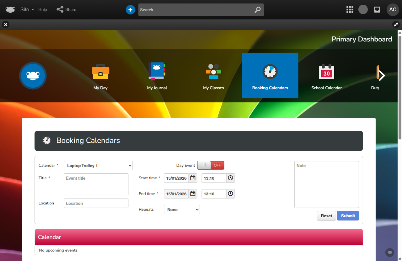 - Open school calendars, booking calendars, and duty rotas