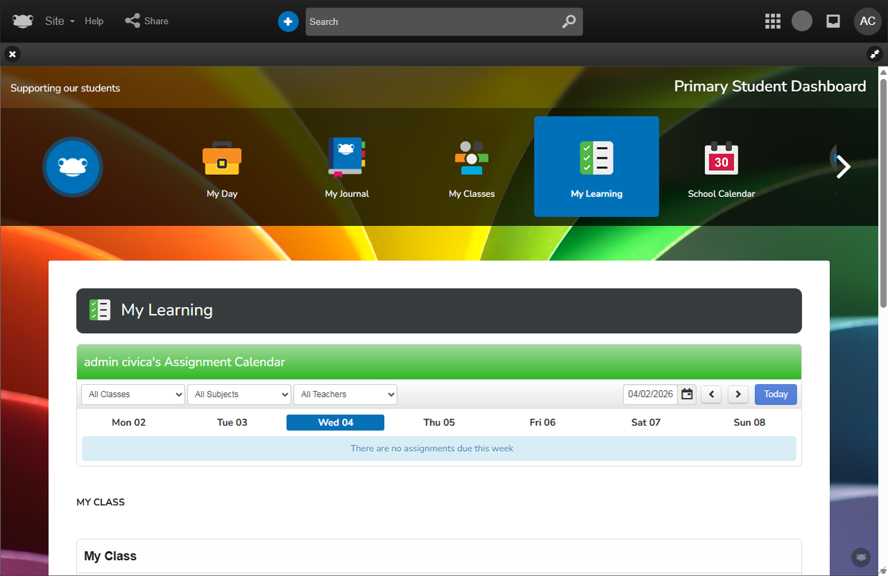 The Primary Dashboards pack provide a set of role-specific dashboards designed to give Staff, Students, and Family members quick and intuitive access to the tools and information they need most.