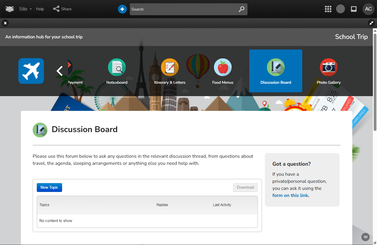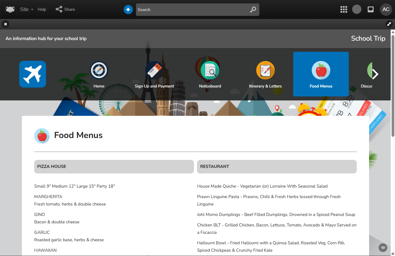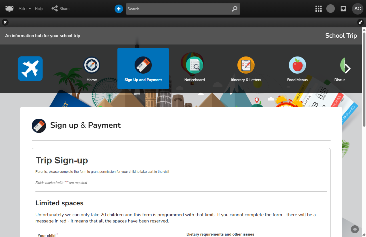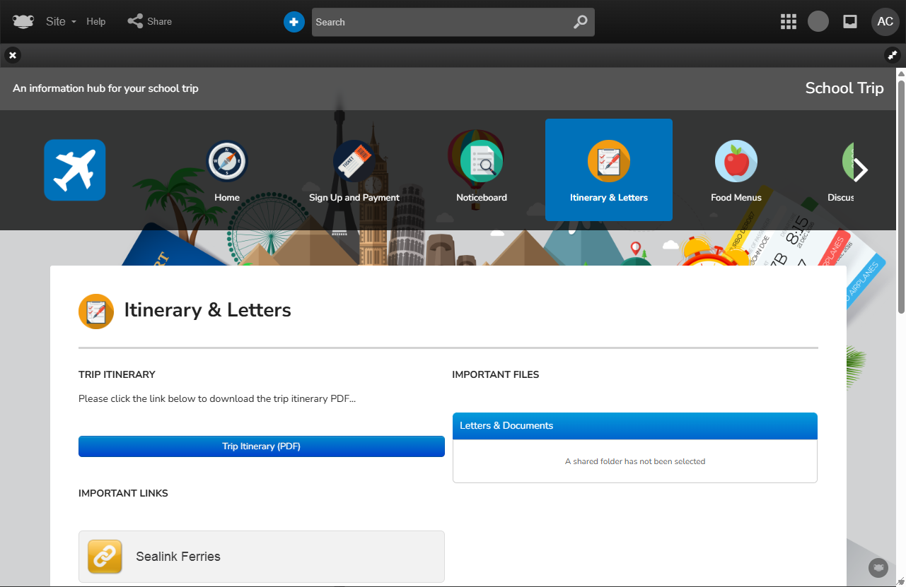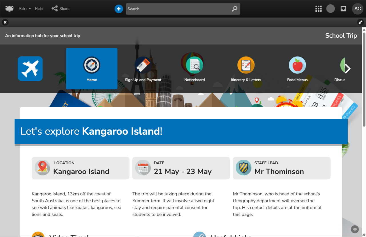 It enables all parties to gather and share essential details, from permissions, policies, kit lists, inventories, and itineraries to showcasing what learners achieved, either during the trip or upon their return.