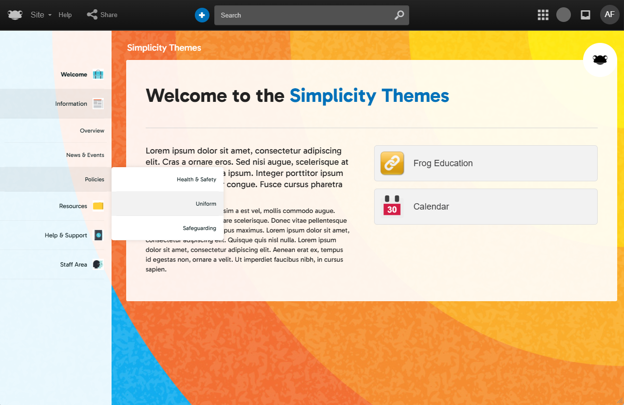 The Simplicity set of themes have been designed to provide you with a minimalist style to ensure your site content becomes the focus of the user’s experience. This version of the theme uses a left accordion menu.